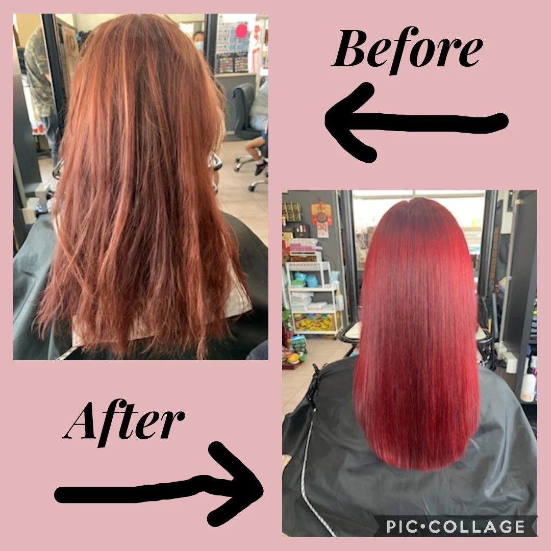 Colour root, full colour, hair Keratin treatment, hair permanent straightening